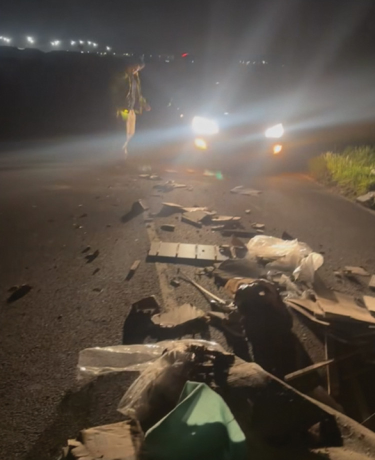 Debris on the road, which takes in a steep incline, was spread over around 100 yards and is believed to have been caused by fly-tippers opening the back of a lorry or van and letting gravity do the dumping job as they drive up the hill.