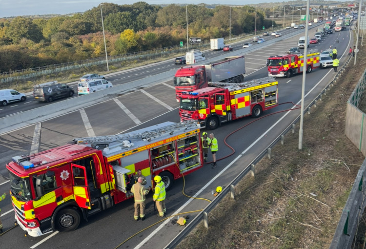 THREE teams of firefighters dealt with a lorry fire on the A13 westbound carriageway just before 4pm today (Thursday, 9 October).