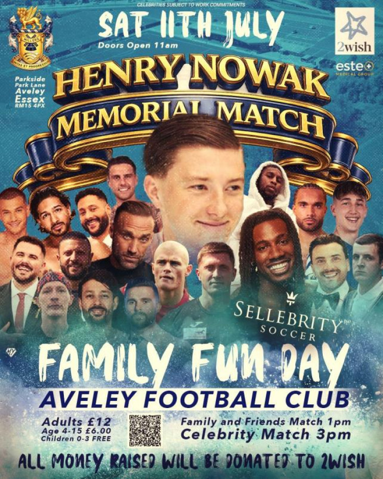The game at Aveley Football Club on Saturday July 11 will feature celebrities including former West Ham and Liverpool footballer Paul Konchesky, television personality Calum Best and famous faces from Love Island and Married at First Sight.