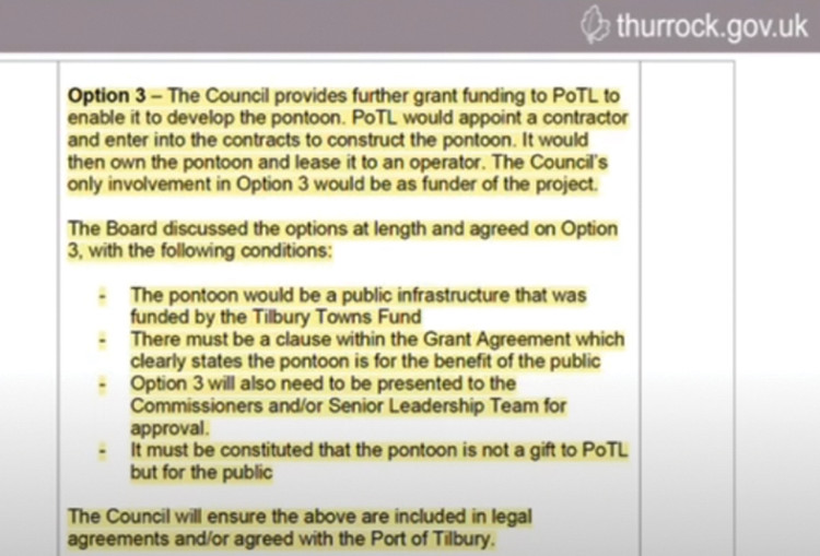 "One of the 'myths' I raised was that we were using Tilbury money to build the pontoon that we will then give to the port, which is a private entity that will make profit off of it.