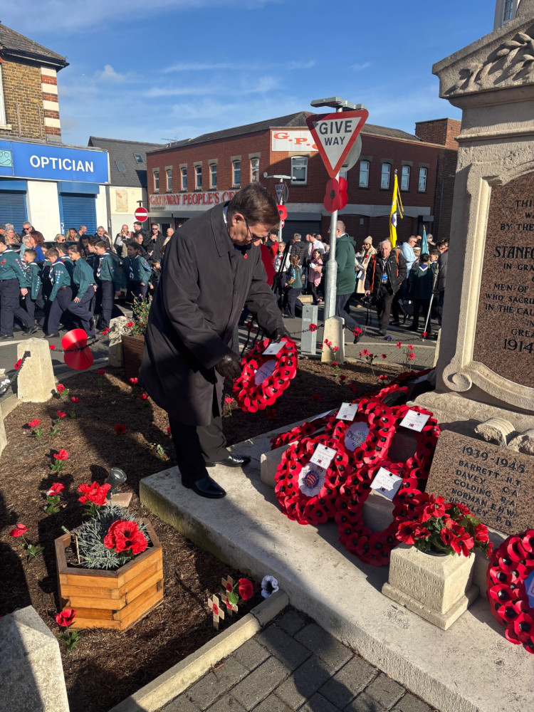 Among those laying a wreath was Stanford man Spencer Oake, who represented East Thurrock Community Association to mark Remembrance weekend. His grandfather, George Knight, fought in Burma and would have been 104 this coming Armistice Day, Tuesday, 11 November.