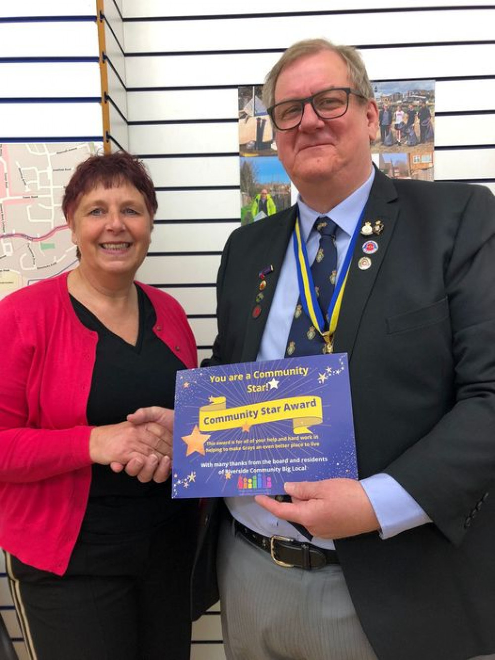 RBL chair Rod Oakley took to social media to express his thanks after being surprised with a community star award when he attended the recent Riverside Community Big Local annual meeting in Grays.
