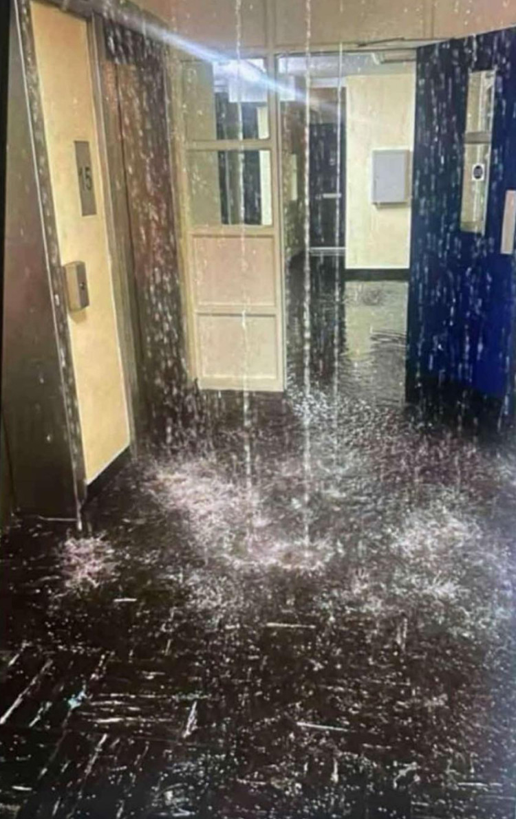Residents have reported that a water tank in the upper stages of the building burst and footage has been posted social media of water cascading through floors of the tower block.