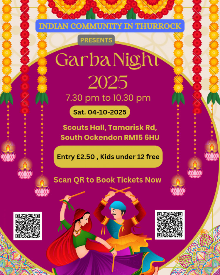 Also on Saturday,m the Scout Hall on Tamarisk Road, South Ockendon, will share cultures when it hosts a Navratri Celebration at Garba Night 2025!