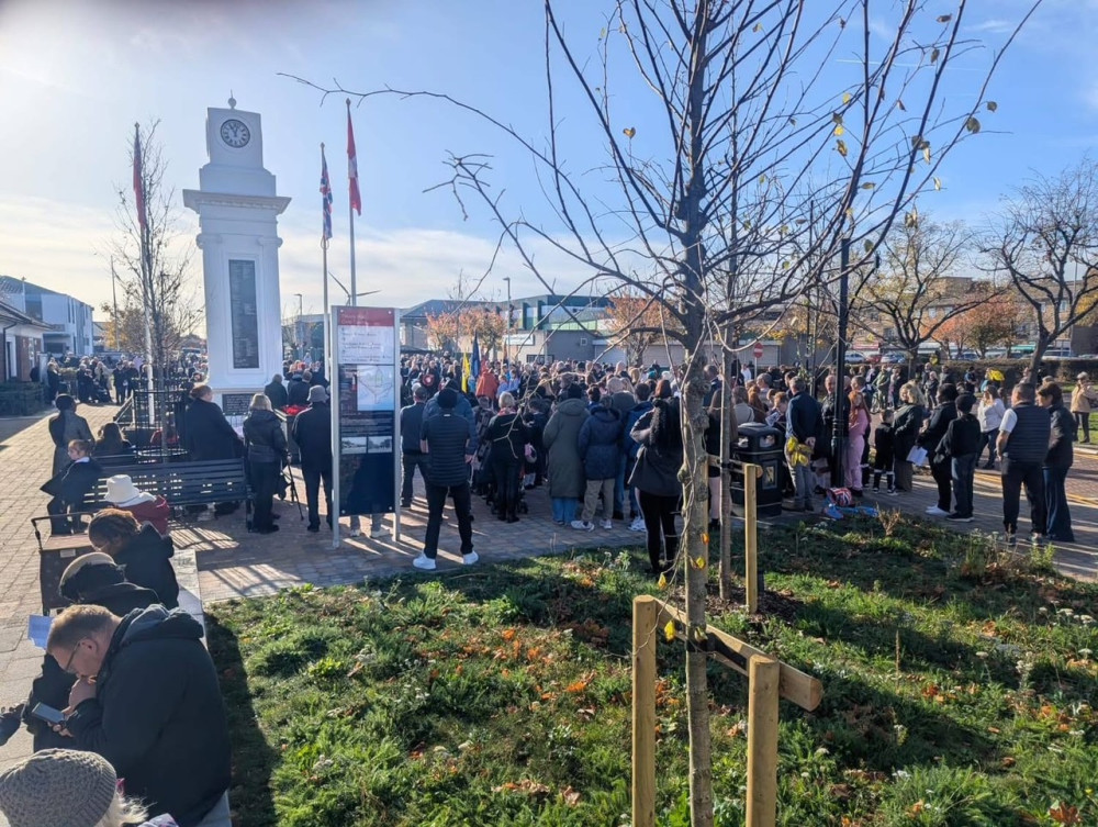 THE refurbished Tilbury War memorial area played host to its firt Remembrance Sunday service today (Sunday, 9 November) and was very well-attended.
