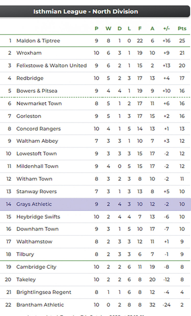 It came on an evening when the home side might think themselves unfortunate after they pressed Grays hard through the match – but they made their own task harder when captain Charlie Durling was sent off with 21 minutes to go, with Grays then capitalising on their one man advantage.