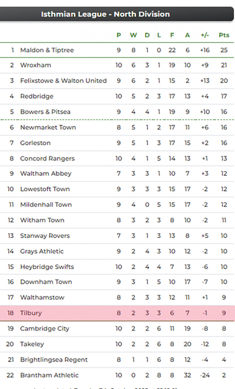Tilbury, who earlier in the week were paired with Hadley in the Isuzu FA Trophy first round in a match scheduled for Saturday, 25 October, are next in action on Saturday, 11 October, when high-flying Redbridge visit Chadfields.