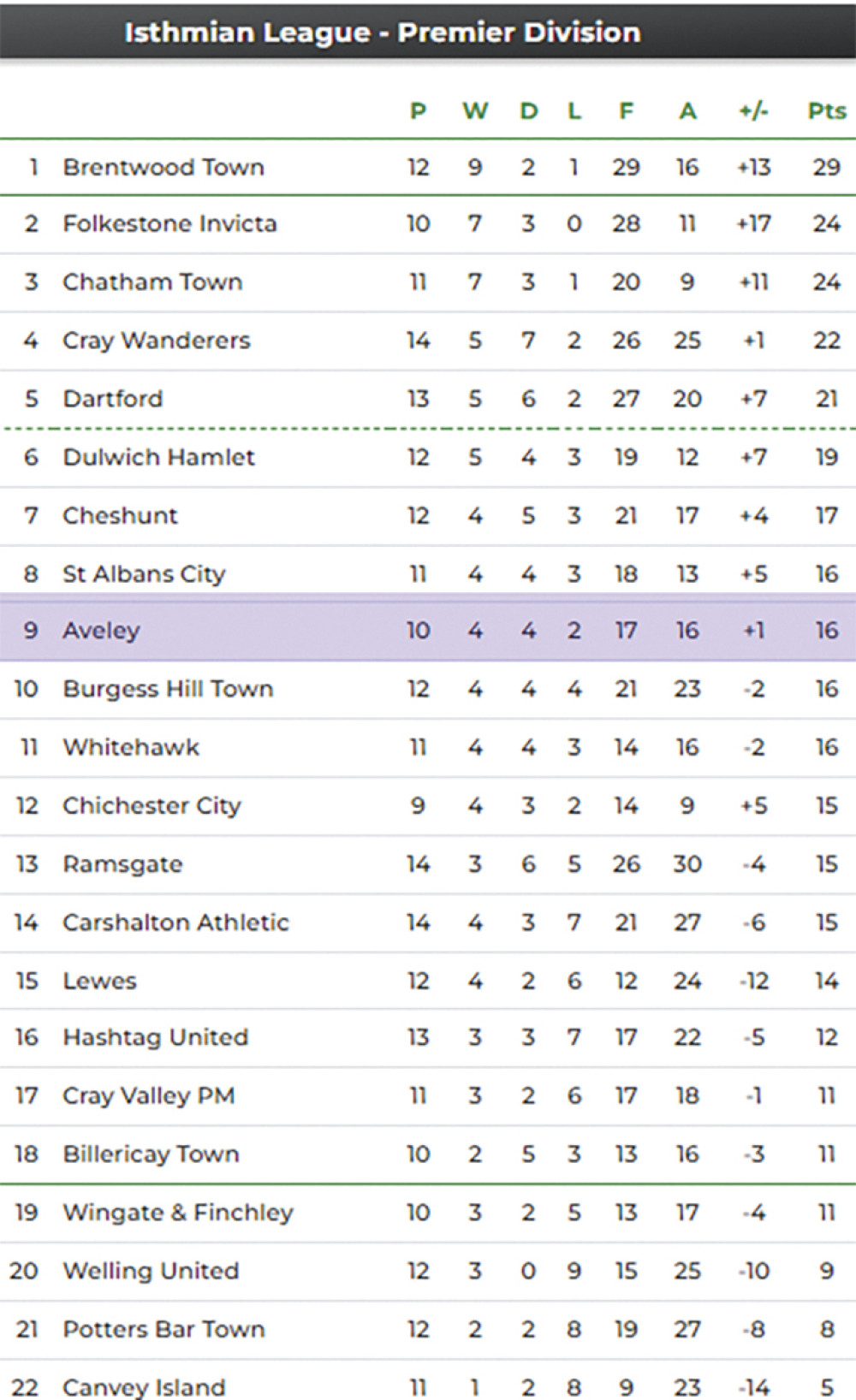 AN exciting climax saw Aveley's improved form result in an away win and more points in their bid to climb the Isthmian Premier table on Saturday (25 October) – and as a result they sit ninth, with matches in hand on all but one of the eight above them.