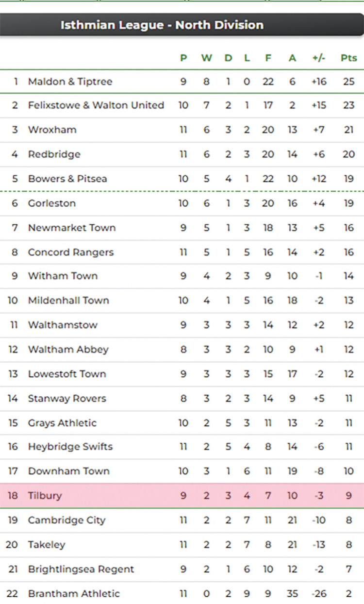 Dockers are back in action on Tuesday, 14 October when they travel to face Waltham Abbey in another league meeting.